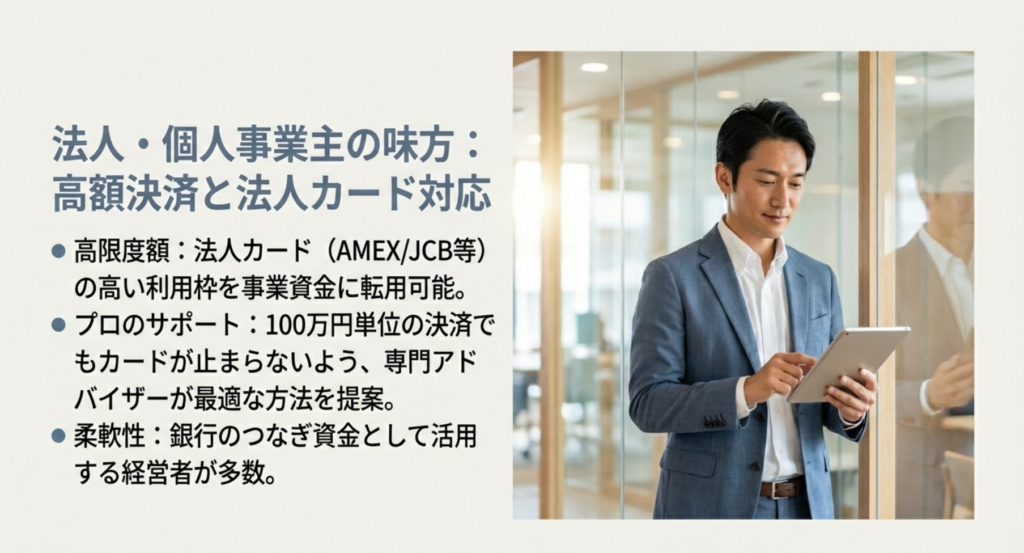 私のような個人事業主にとって、ビジネスカードで決済してそのまま事業資金に充てられる柔軟性は、いざという時のバックアッププランとして非常に心強いものです。