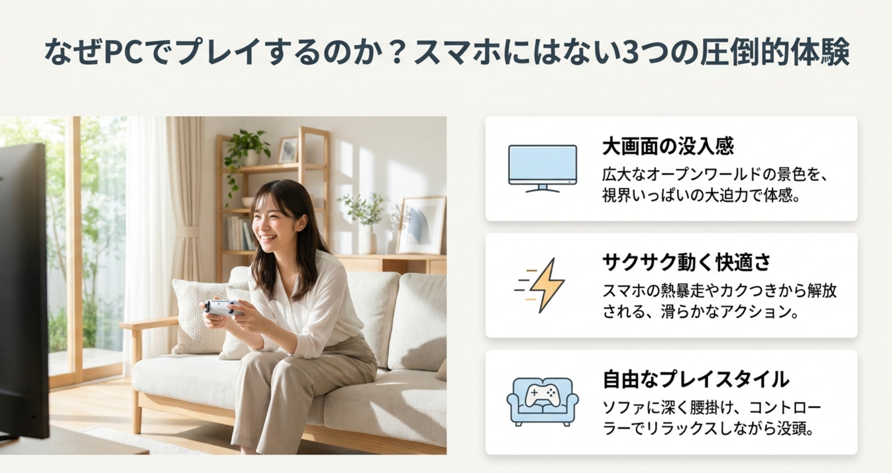 会社に縛られず、自由な時間で自分の好きなゲームに没頭できる生活は、まさに脱サラの醍醐味の一つですよね。最近、オープンワールドRPGとして注目を集めている鳴潮ですが、スマホだけでなく大画面のPCで遊びたいという声をよく耳にします。